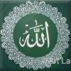 Hand painted name of ALLAH with designs on the sides. This is a part of modern Islamic art.