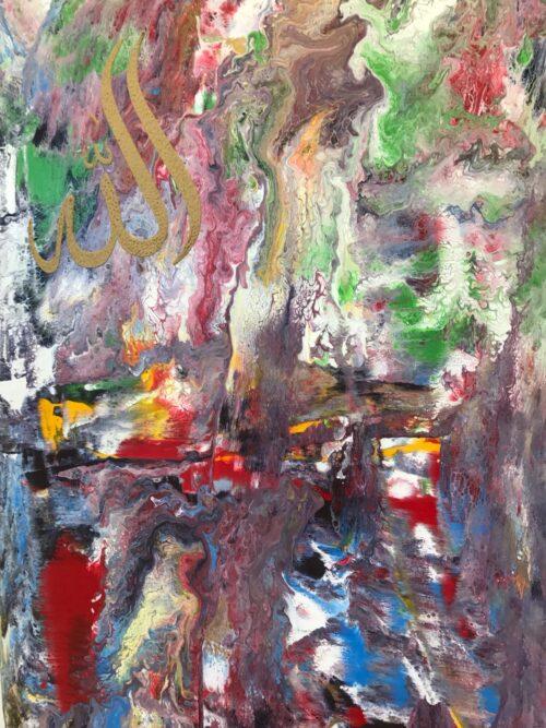 He is also the Master of the Day of judgement. Hand painted  Allah, word on a canvas.  Islamic Art Gallery Toronto.
