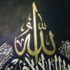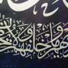This is a 31×48 Inches gallery canvas. The background resembles to galaxy in the universe. The calligraphy is in white paint. It is painted to look like a galaxy. This painting color scheme will fit in any room of the house. These canvas sizes are usually good to be hanged above the sofa.